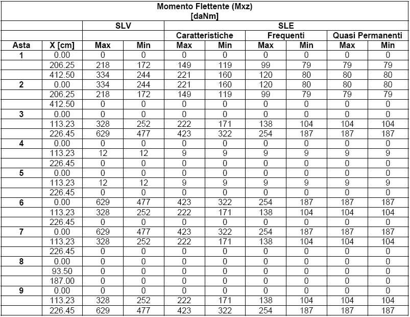 Tenendo conto della geometria, dei carichi che gravano sulla capriata e delle combinazioni di carico secondo il Capitolo 2 del D.M. 14/01/2008, si ottengono le sollecitazioni con le quali verificare gli elementi. Le sollecitazioni vengono riassunte sotto sottoforma di inviluppi (si riportano i valori massimi e minimi per ogni sollecitazione).