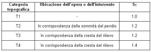 Dalla Tabella 7, tenendo conto che la categoria topografica è T1, si ottiene ST = 1. In definitiva: