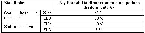 Il valore PRV da associare allo stato limite è riportato nella Tabella 5: