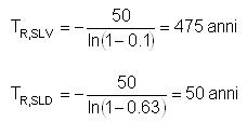 Nel nostro caso, tenendo conto della classe d’uso (II) e del periodo di riferimento (50), per SLV ed SLD si ottiene:
