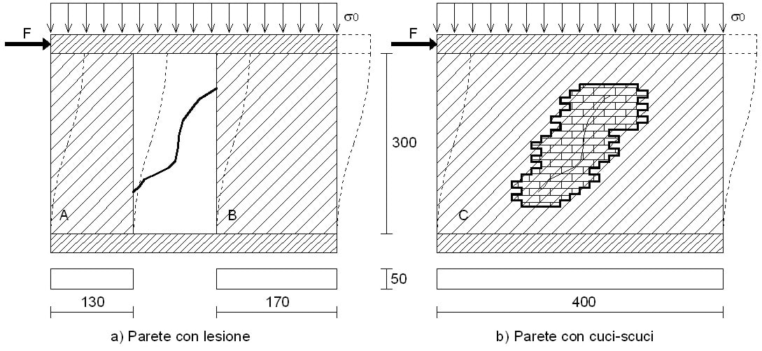 Figura 8.7.3 - Modellazione della parete con e senza cuci-scuci