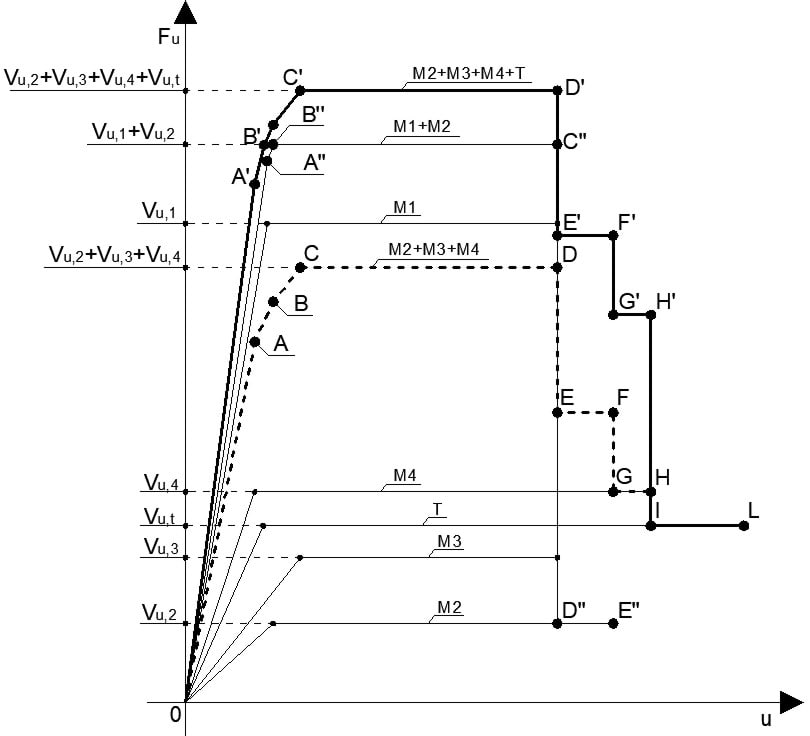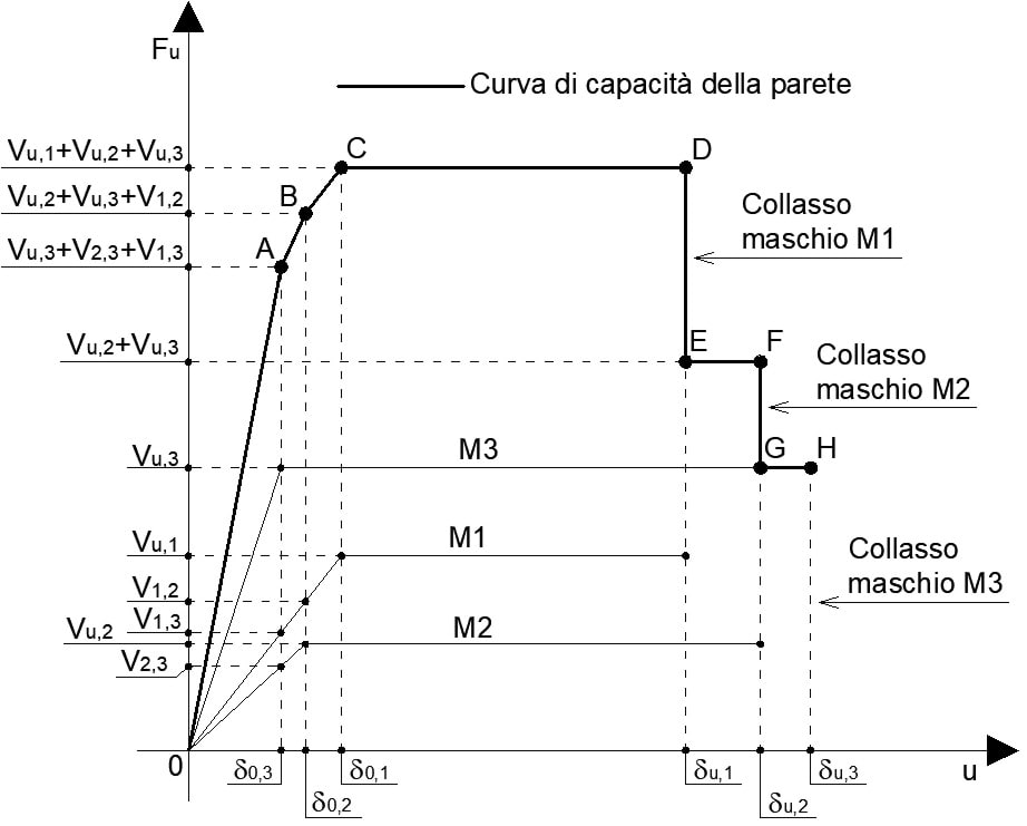 Figura 8.10.7 – Curva di capacità di una parete costituita da tre maschi murari