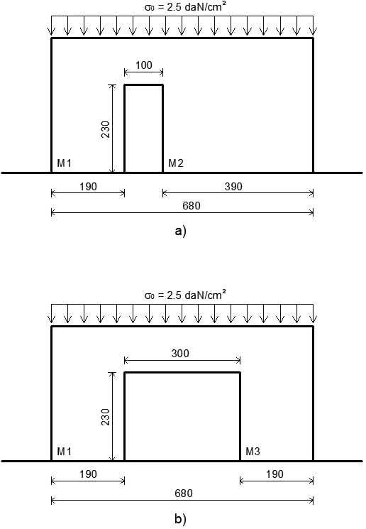 Figura 8.10.19 – Geometria della parete – a) stato di fatto; b) progetto