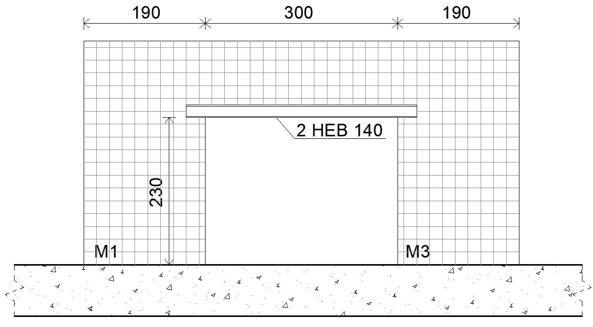Figura 8.10.21 – Parete con architrave HEB 140 e consolidata con intonaco armato