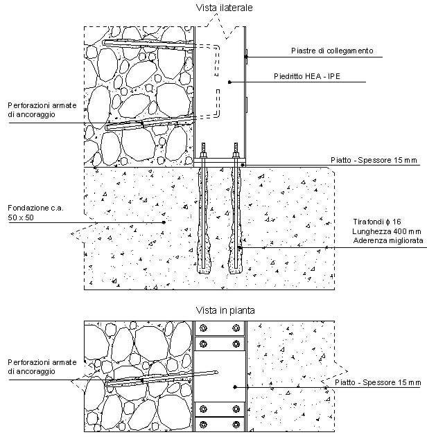 Figura 8.10.24 – Particolare costruttivo del collegamento tra la cerchiatura e la trave di fondazione